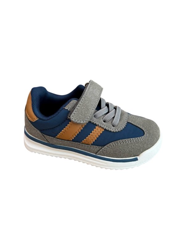 Deportiva tipo retro flexible y con cierre de velcro y cordones elásticos para mayor comodidad en la puesta, diseñada con materiales transpirables y de calidad para los pasos de los más pequeños.